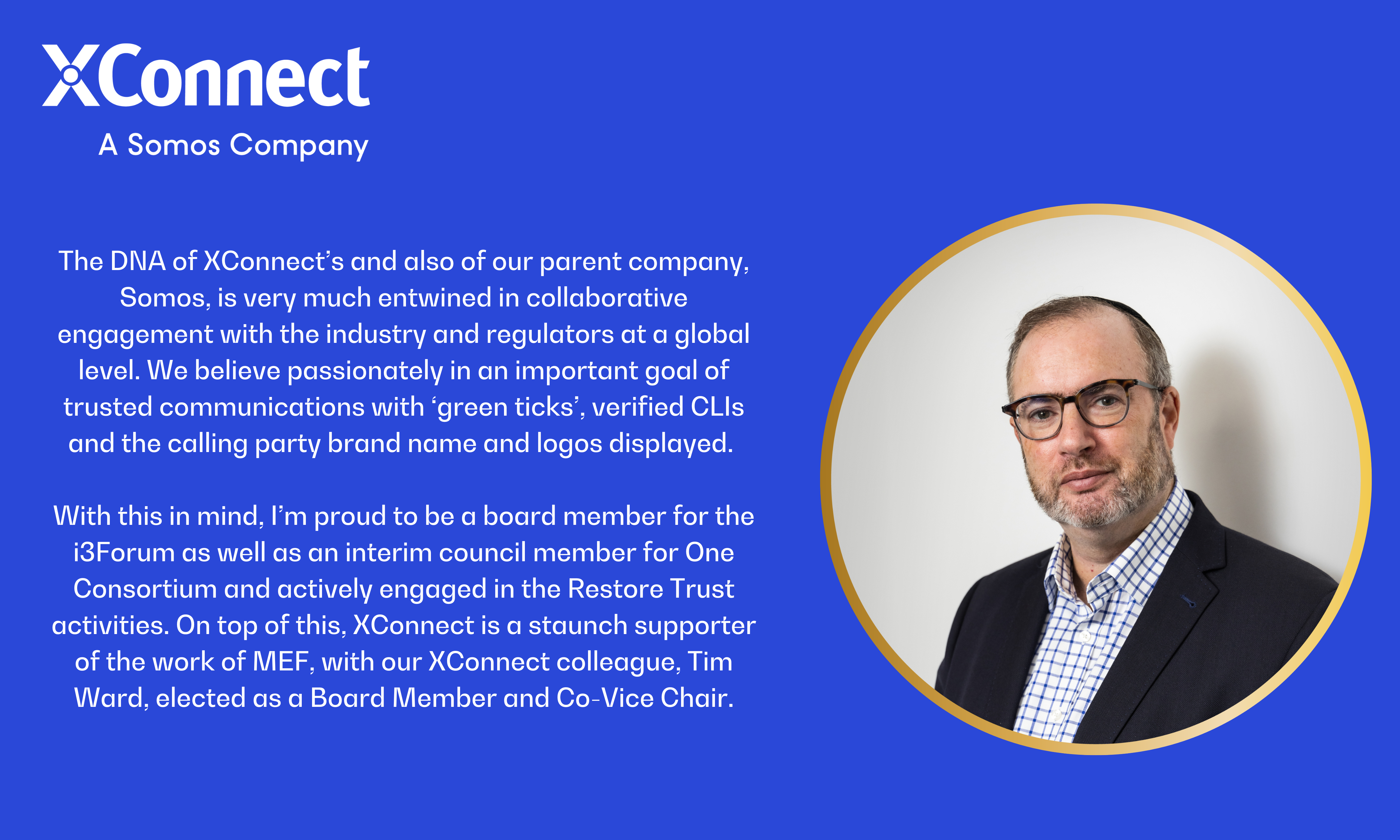 The DNA of XConnect’s and also of our parent company, Somos, is very much entwined in collaborative engagement with the industry and regulators at a global level. We believe passionately in an important goal of trusted communications with ‘green ticks’, verified CLIs and the calling party brand name and logos displayed.