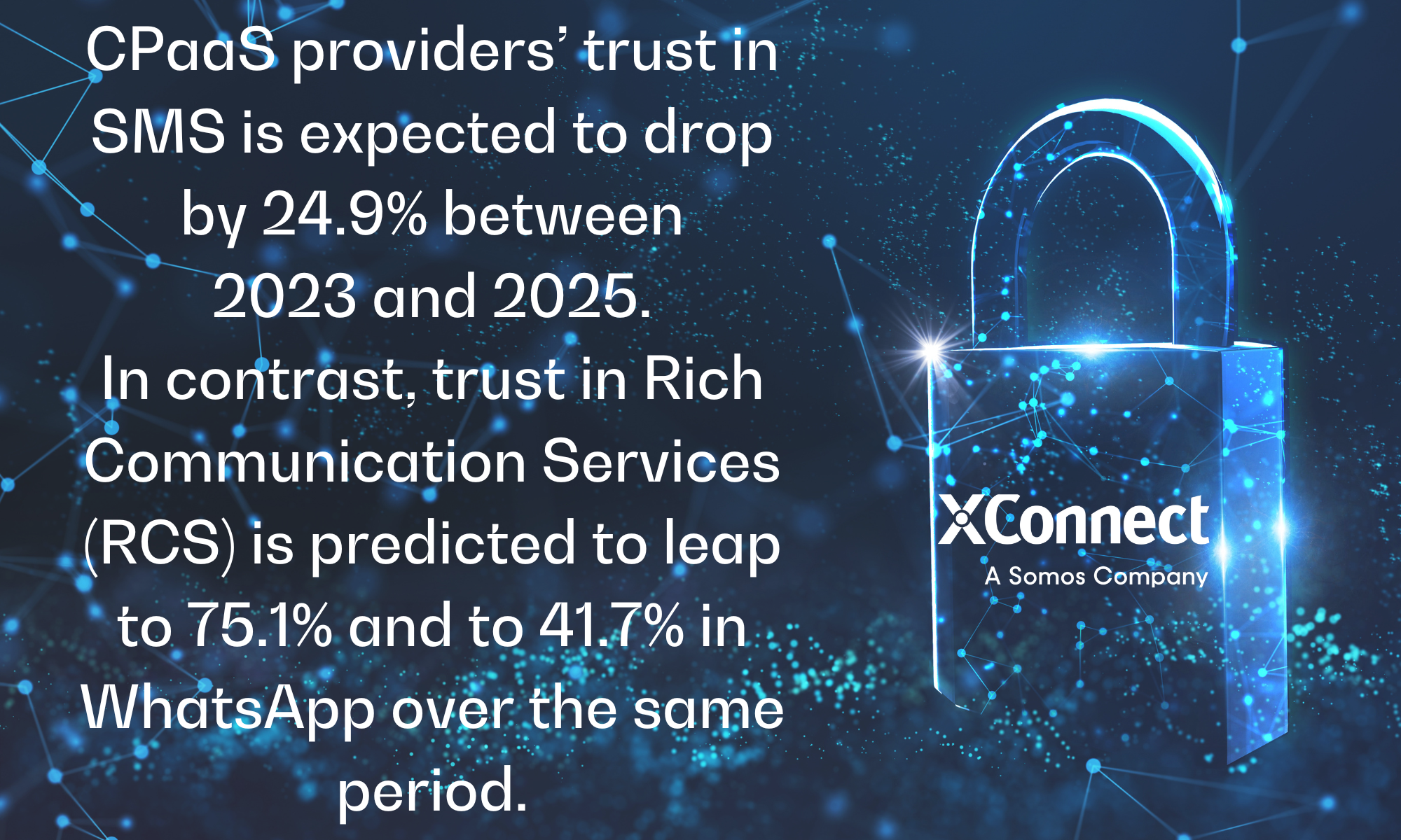 Our new report with Mobilesquared, ‘Do We Still Have Trust in Communications?’, revealed that CPaaS providers’ trust in SMS is expected to drop by 24.9% between 2023 and 2025. In contrast, trust in Rich Communication Services (RCS) is predicted to leap to 75.1% and to 41.7% in WhatsApp over the same period.